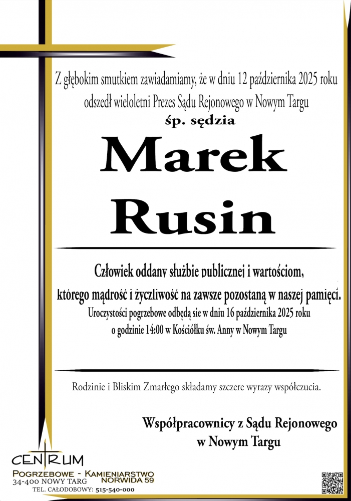Podhale24.pl zastrzega sobie prawo do nie publikowania wspomnień, w szczególności tych nie związanych z profilem działu nekrologi, zawierających wulgaryzmy, wzywających do zachowań niezgodnych z prawem, obrażających osoby publiczne i prywatne, obrażających inne narodowości, rasy, religie itd, oraz te, bez możliwości telefonicznej lub mailowej weryfikacji ich autora.