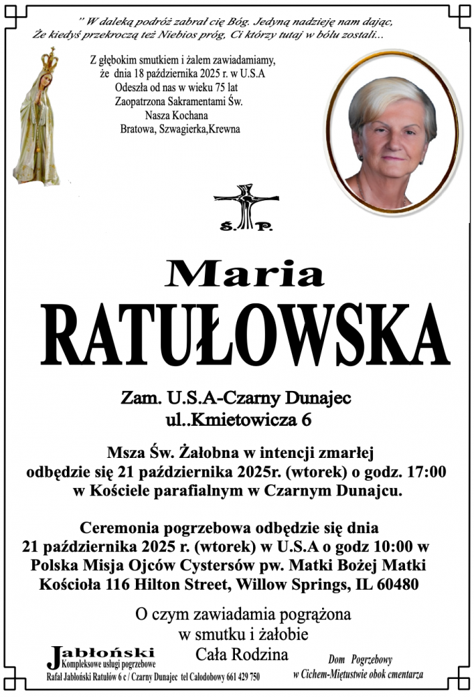 Maria Ratułowska - Nekrologi - podhale24.pl