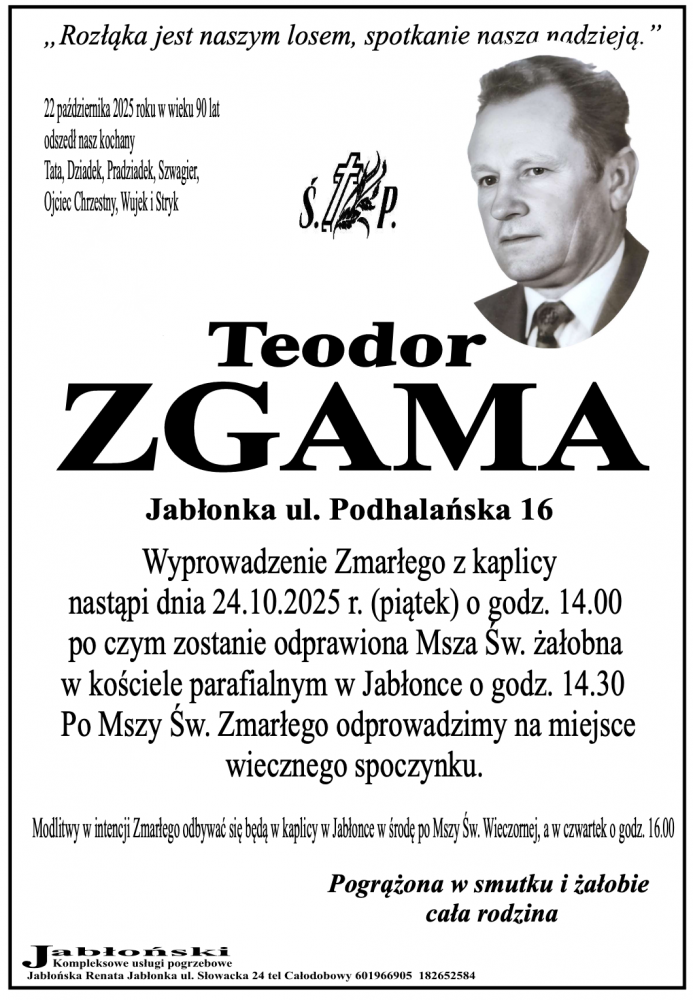 Teodor Zgama - Nekrologi - podhale24.pl