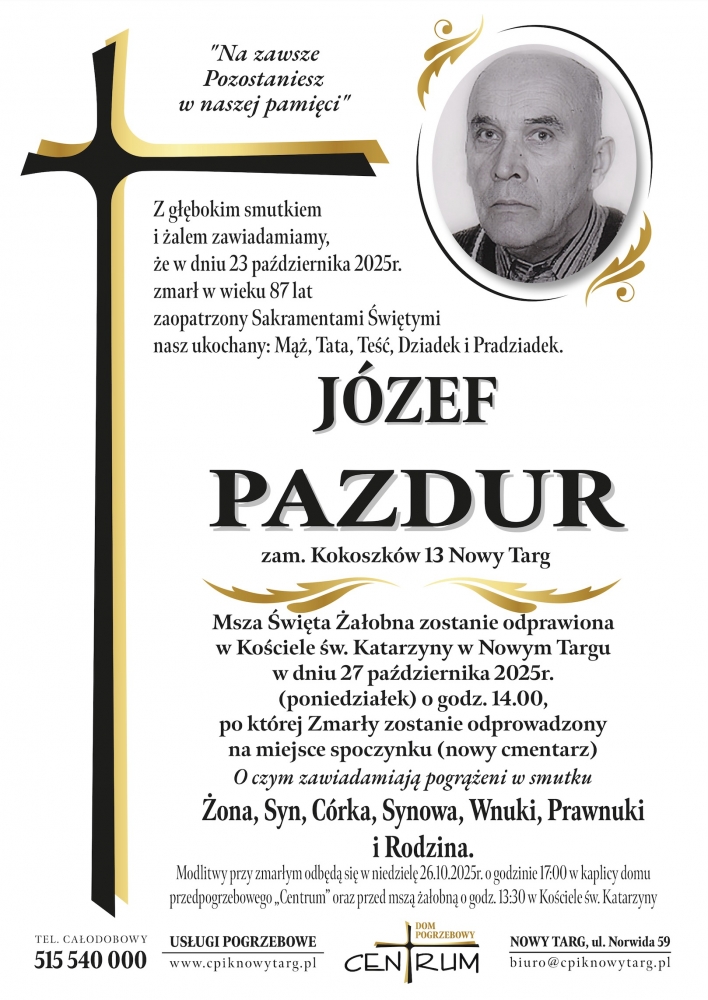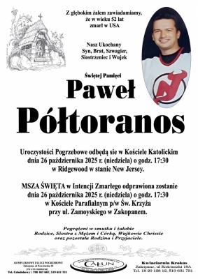 Podhale24.pl zastrzega sobie prawo do nie publikowania wspomnień, w szczególności tych nie związanych z profilem działu nekrologi, zawierających wulgaryzmy, wzywających do zachowań niezgodnych z prawem, obrażających osoby publiczne i prywatne, obrażających inne narodowości, rasy, religie itd, oraz te, bez możliwości telefonicznej lub mailowej weryfikacji ich autora.
