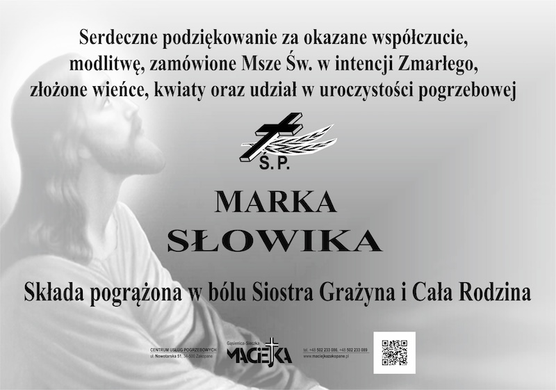 Podhale24.pl zastrzega sobie prawo do nie publikowania wspomnień, w szczególności tych nie związanych z profilem działu nekrologi, zawierających wulgaryzmy, wzywających do zachowań niezgodnych z prawem, obrażających osoby publiczne i prywatne, obrażających inne narodowości, rasy, religie itd, oraz te, bez możliwości telefonicznej lub mailowej weryfikacji ich autora.