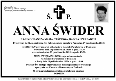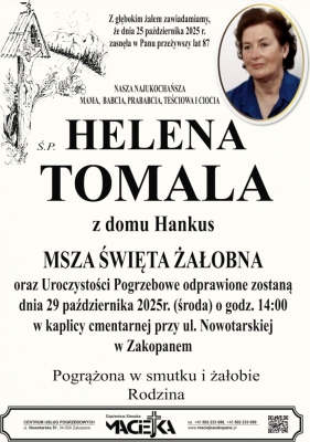 Podhale24.pl zastrzega sobie prawo do nie publikowania wspomnień, w szczególności tych nie związanych z profilem działu nekrologi, zawierających wulgaryzmy, wzywających do zachowań niezgodnych z prawem, obrażających osoby publiczne i prywatne, obrażających inne narodowości, rasy, religie itd, oraz te, bez możliwości telefonicznej lub mailowej weryfikacji ich autora.
