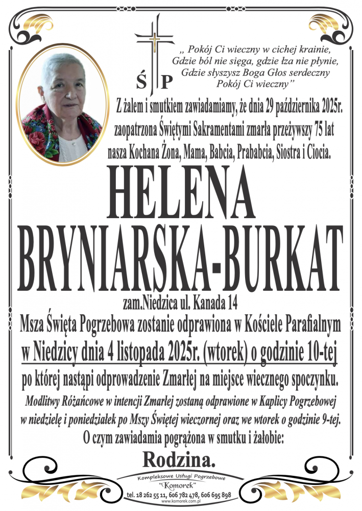Helena Bryniarska-Burkat - Nekrologi - podhale24.pl