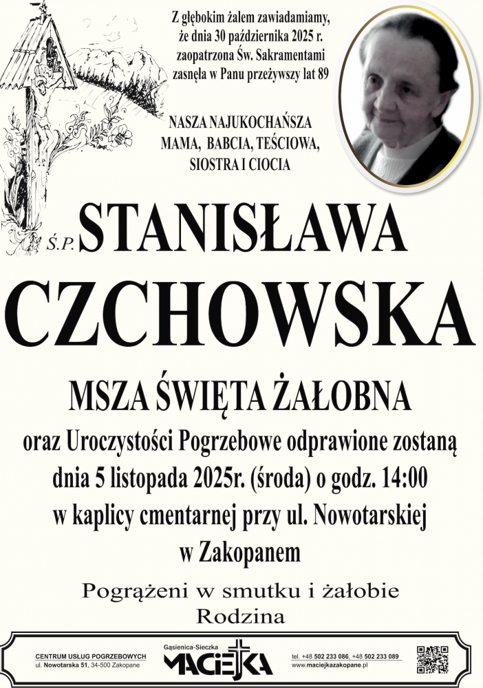 Stanisława Czchowska - Nekrologi - podhale24.pl