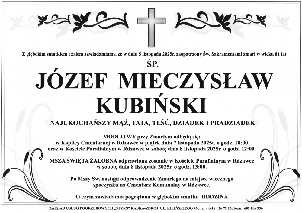 Jóżef Mieczysław Kubiński - Nekrologi - podhale24.pl