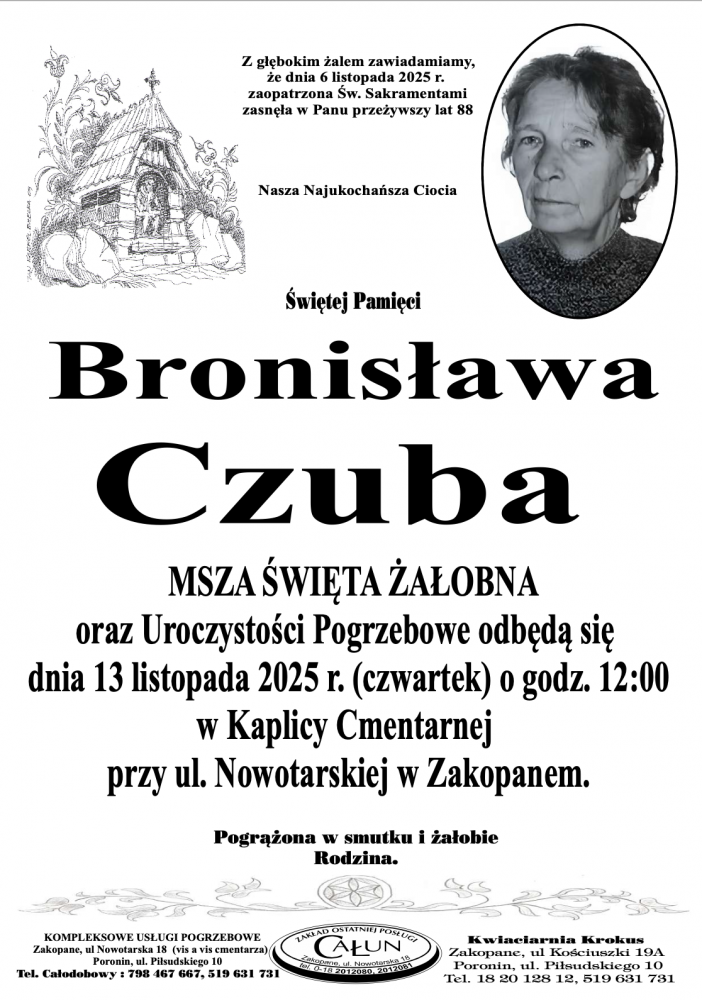 Bronisława Czuba - Nekrologi - podhale24.pl
