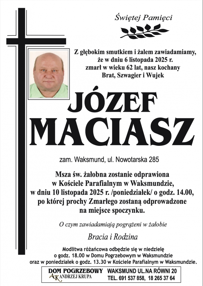 Podhale24.pl zastrzega sobie prawo do nie publikowania wspomnień, w szczególności tych nie związanych z profilem działu nekrologi, zawierających wulgaryzmy, wzywających do zachowań niezgodnych z prawem, obrażających osoby publiczne i prywatne, obrażających inne narodowości, rasy, religie itd, oraz te, bez możliwości telefonicznej lub mailowej weryfikacji ich autora.