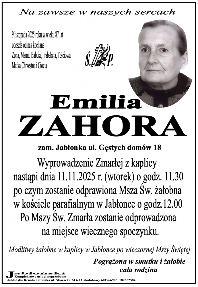 Emilia Zahora - Nekrologi - podhale24.pl