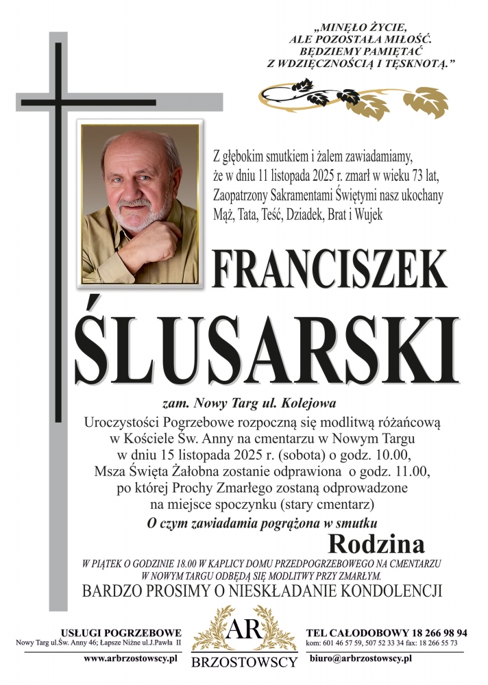 Franciszek Ślusarski - Nekrologi - podhale24.pl