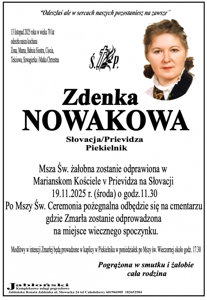 Zdenka Nowakowa - Nekrologi - podhale24.pl