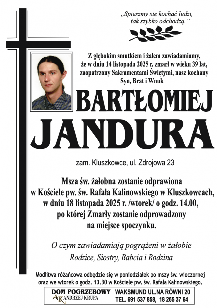 Bartłomiej Jandura - Nekrologi - podhale24.pl