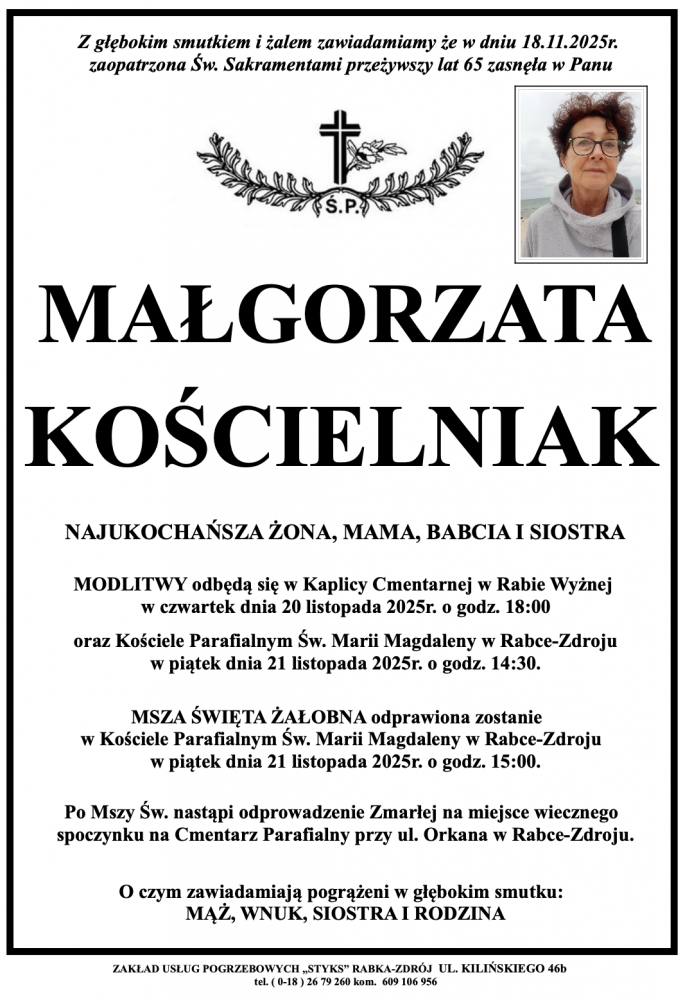 Małgorzata Kościelniak - Nekrologi - podhale24.pl