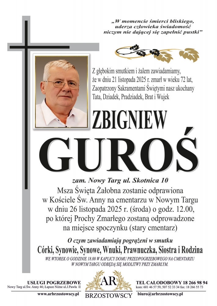 Zbigniew Guroś - Nekrologi - podhale24.pl