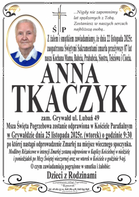 Podhale24.pl zastrzega sobie prawo do nie publikowania wspomnień, w szczególności tych nie związanych z profilem działu nekrologi, zawierających wulgaryzmy, wzywających do zachowań niezgodnych z prawem, obrażających osoby publiczne i prywatne, obrażających inne narodowości, rasy, religie itd, oraz te, bez możliwości telefonicznej lub mailowej weryfikacji ich autora.