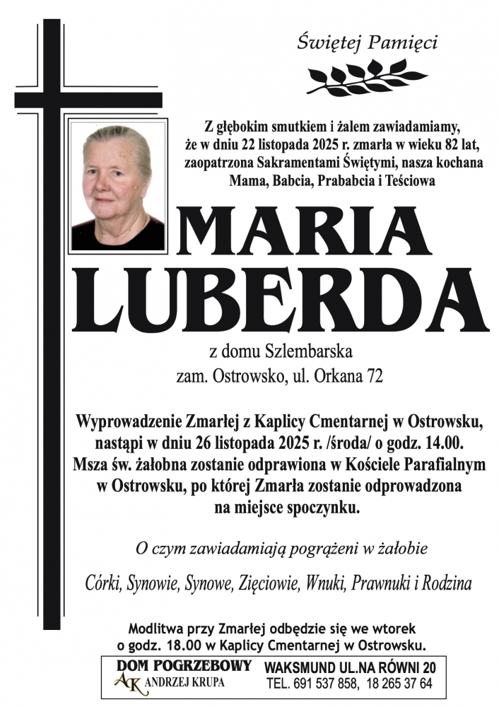 Maria Luberda - Nekrologi - podhale24.pl