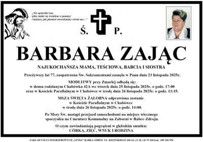 Podhale24.pl zastrzega sobie prawo do nie publikowania wspomnień, w szczególności tych nie związanych z profilem działu nekrologi, zawierających wulgaryzmy, wzywających do zachowań niezgodnych z prawem, obrażających osoby publiczne i prywatne, obrażających inne narodowości, rasy, religie itd, oraz te, bez możliwości telefonicznej lub mailowej weryfikacji ich autora.