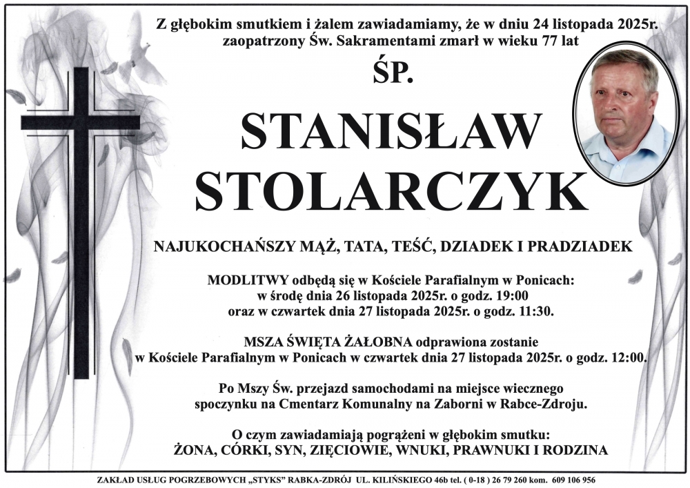 Stanisłąw Stolarczyk - Nekrologi - podhale24.pl