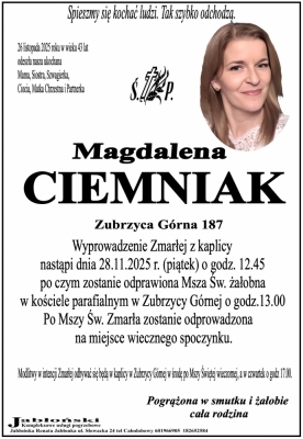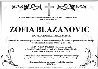 Podhale24.pl zastrzega sobie prawo do nie publikowania wspomnień, w szczególności tych nie związanych z profilem działu nekrologi, zawierających wulgaryzmy, wzywających do zachowań niezgodnych z prawem, obrażających osoby publiczne i prywatne, obrażających inne narodowości, rasy, religie itd, oraz te, bez możliwości telefonicznej lub mailowej weryfikacji ich autora.