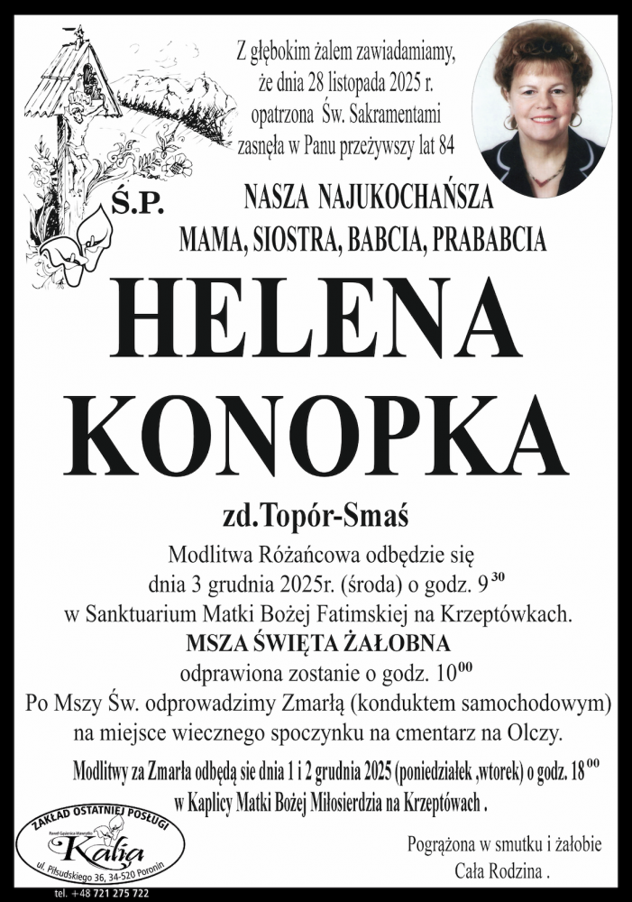 Podhale24.pl zastrzega sobie prawo do nie publikowania wspomnień, w szczególności tych nie związanych z profilem działu nekrologi, zawierających wulgaryzmy, wzywających do zachowań niezgodnych z prawem, obrażających osoby publiczne i prywatne, obrażających inne narodowości, rasy, religie itd, oraz te, bez możliwości telefonicznej lub mailowej weryfikacji ich autora.