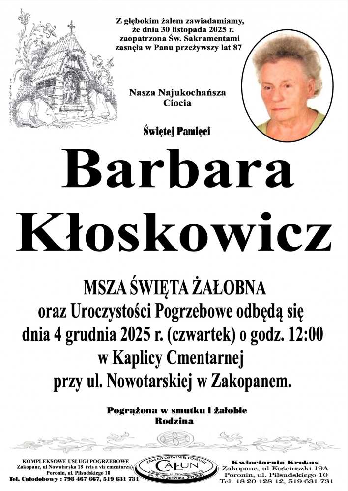 Barbara Kłoskowicz - Nekrologi - podhale24.pl