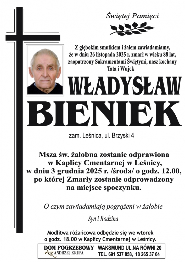 Władysław Bieniek - Nekrologi - podhale24.pl