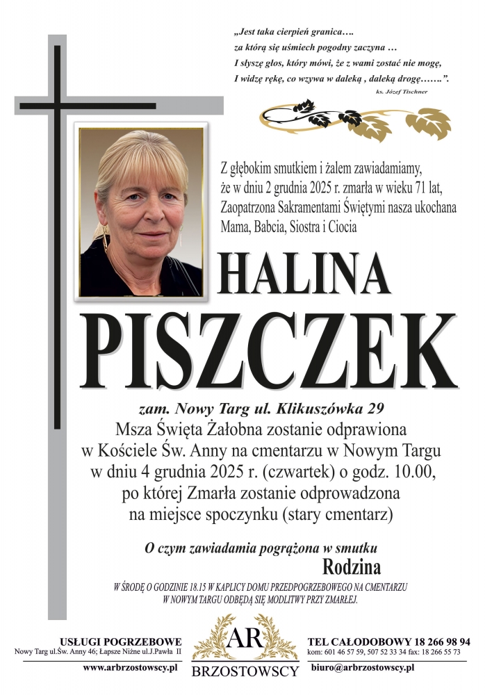 Halina Piszczek - Nekrologi - podhale24.pl