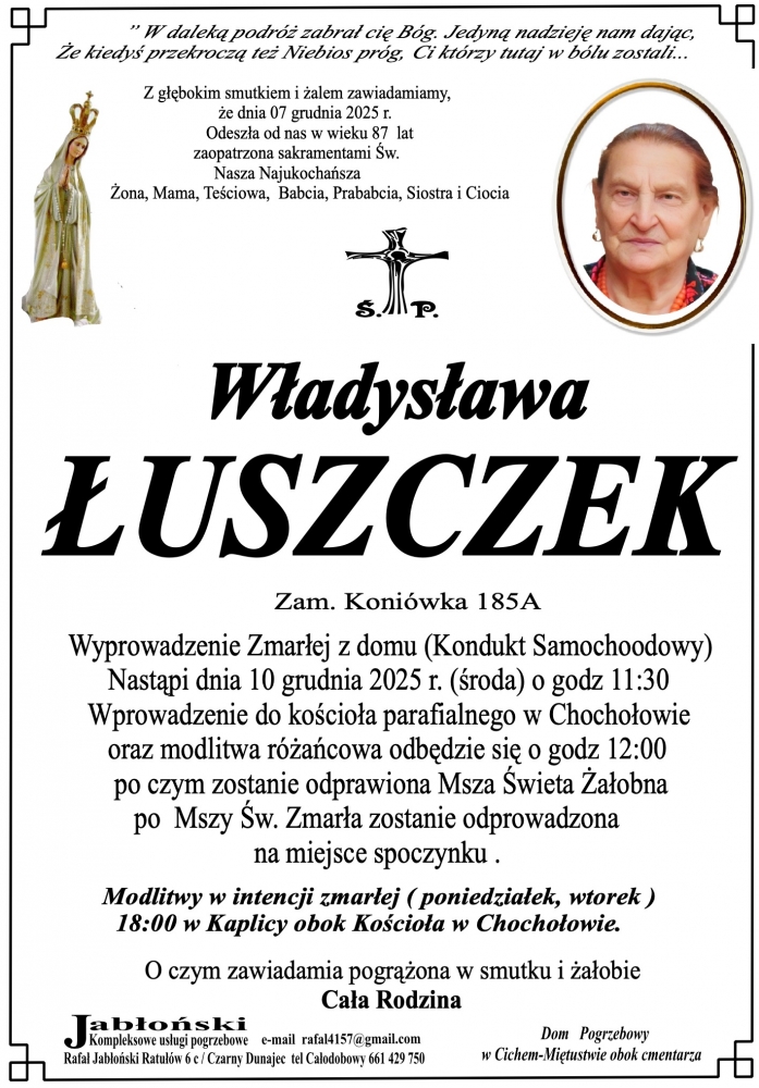Władysława Łuszczek - Nekrologi - podhale24.pl