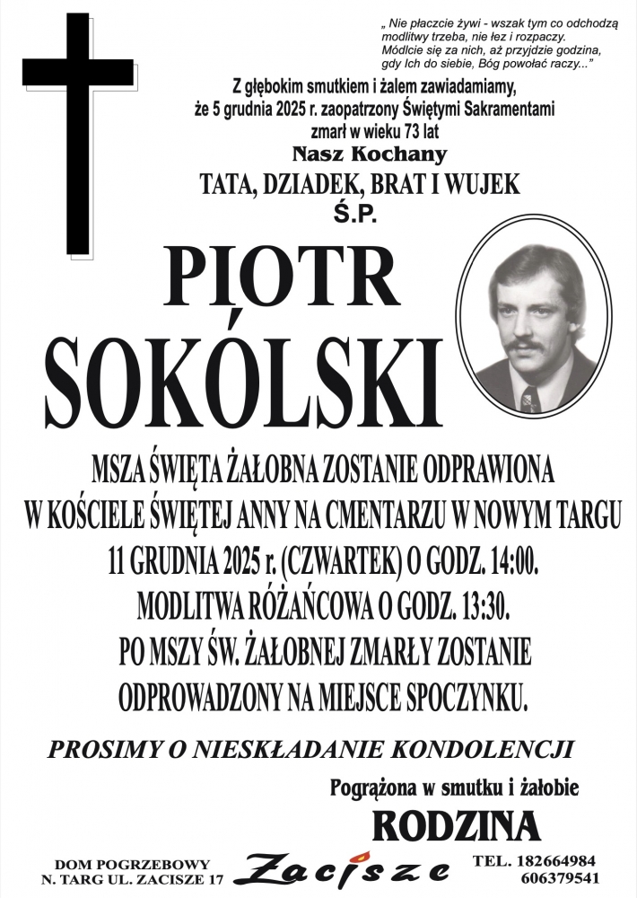 Piotr Sokólski - Nekrologi - podhale24.pl
