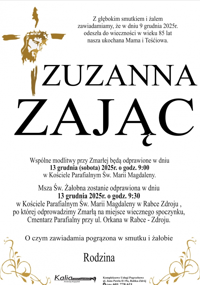 Zuzanna Zając - Nekrologi - podhale24.pl