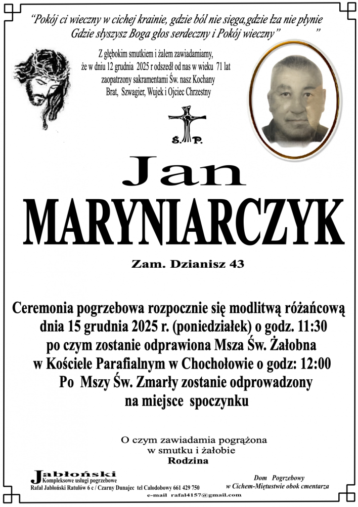 Jan Maryniarczyk - Nekrologi - podhale24.pl