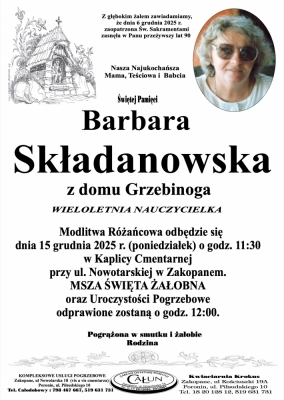 Podhale24.pl zastrzega sobie prawo do nie publikowania wspomnień, w szczególności tych nie związanych z profilem działu nekrologi, zawierających wulgaryzmy, wzywających do zachowań niezgodnych z prawem, obrażających osoby publiczne i prywatne, obrażających inne narodowości, rasy, religie itd, oraz te, bez możliwości telefonicznej lub mailowej weryfikacji ich autora.