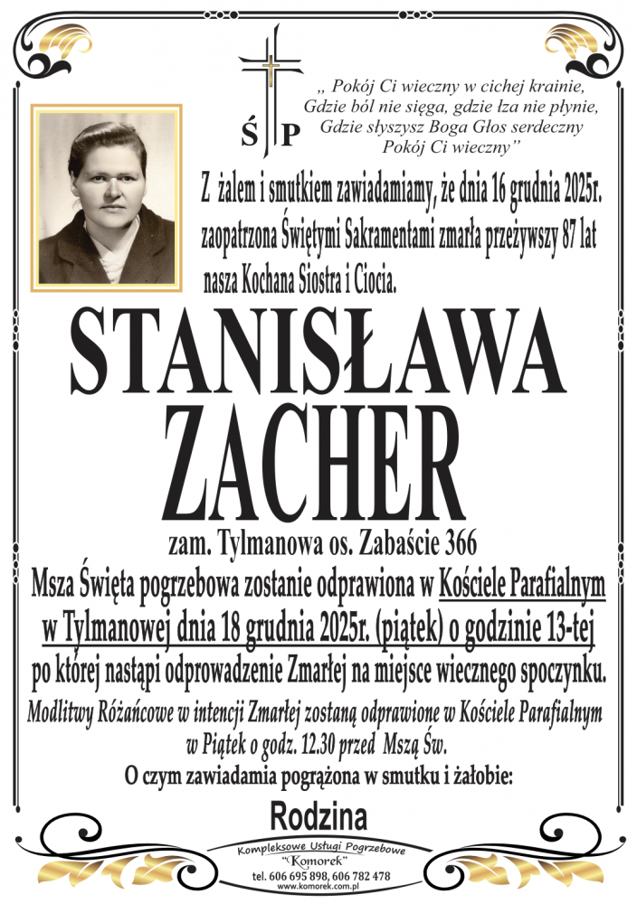 Stanisława Zacher - Nekrologi - podhale24.pl