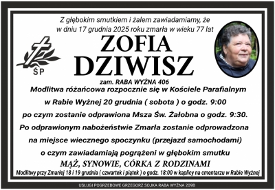 Podhale24.pl zastrzega sobie prawo do nie publikowania wspomnień, w szczególności tych nie związanych z profilem działu nekrologi, zawierających wulgaryzmy, wzywających do zachowań niezgodnych z prawem, obrażających osoby publiczne i prywatne, obrażających inne narodowości, rasy, religie itd, oraz te, bez możliwości telefonicznej lub mailowej weryfikacji ich autora.