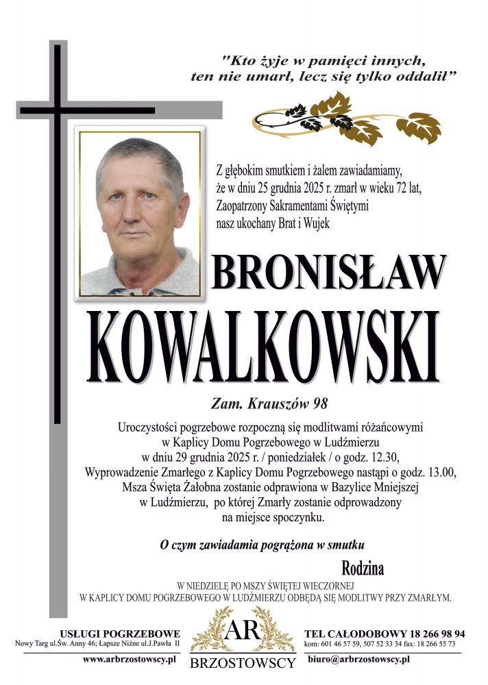 Bronisław Kowalkowski - Nekrologi - podhale24.pl