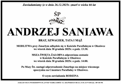 Podhale24.pl zastrzega sobie prawo do nie publikowania wspomnień, w szczególności tych nie związanych z profilem działu nekrologi, zawierających wulgaryzmy, wzywających do zachowań niezgodnych z prawem, obrażających osoby publiczne i prywatne, obrażających inne narodowości, rasy, religie itd, oraz te, bez możliwości telefonicznej lub mailowej weryfikacji ich autora.