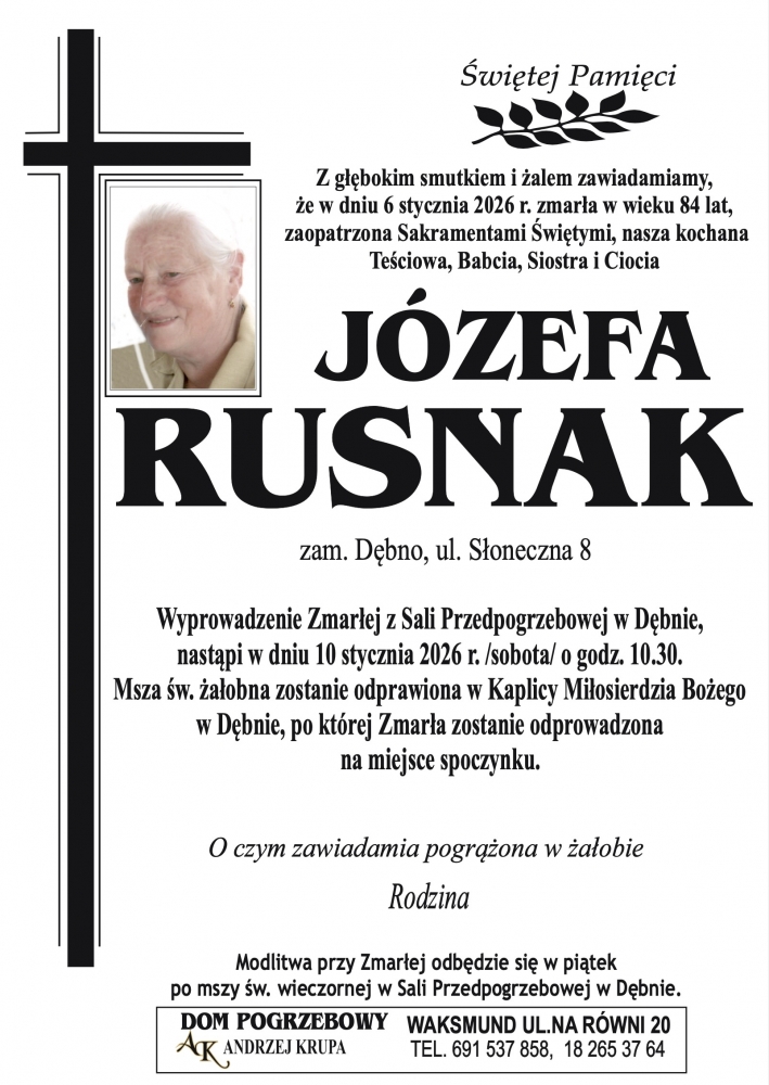 Józefa Rusnak - Nekrologi - podhale24.pl