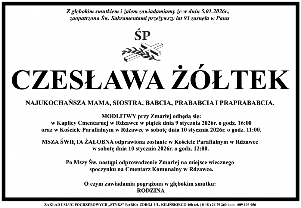 Czesława Żółtek - Nekrologi - podhale24.pl