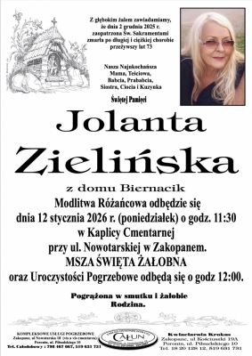 Podhale24.pl zastrzega sobie prawo do nie publikowania wspomnień, w szczególności tych nie związanych z profilem działu nekrologi, zawierających wulgaryzmy, wzywających do zachowań niezgodnych z prawem, obrażających osoby publiczne i prywatne, obrażających inne narodowości, rasy, religie itd, oraz te, bez możliwości telefonicznej lub mailowej weryfikacji ich autora.