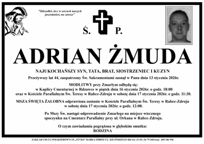 Podhale24.pl zastrzega sobie prawo do nie publikowania wspomnień, w szczególności tych nie związanych z profilem działu nekrologi, zawierających wulgaryzmy, wzywających do zachowań niezgodnych z prawem, obrażających osoby publiczne i prywatne, obrażających inne narodowości, rasy, religie itd, oraz te, bez możliwości telefonicznej lub mailowej weryfikacji ich autora.