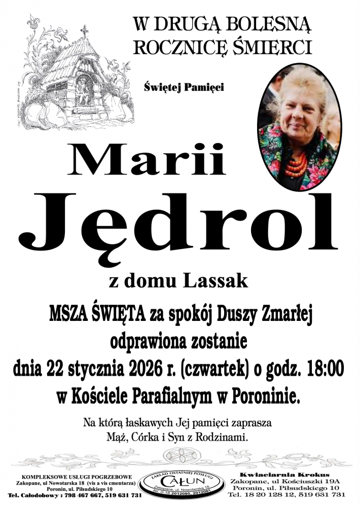 Podhale24.pl zastrzega sobie prawo do nie publikowania wspomnień, w szczególności tych nie związanych z profilem działu nekrologi, zawierających wulgaryzmy, wzywających do zachowań niezgodnych z prawem, obrażających osoby publiczne i prywatne, obrażających inne narodowości, rasy, religie itd, oraz te, bez możliwości telefonicznej lub mailowej weryfikacji ich autora.