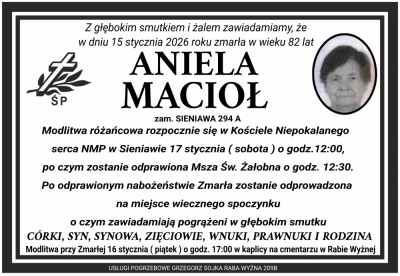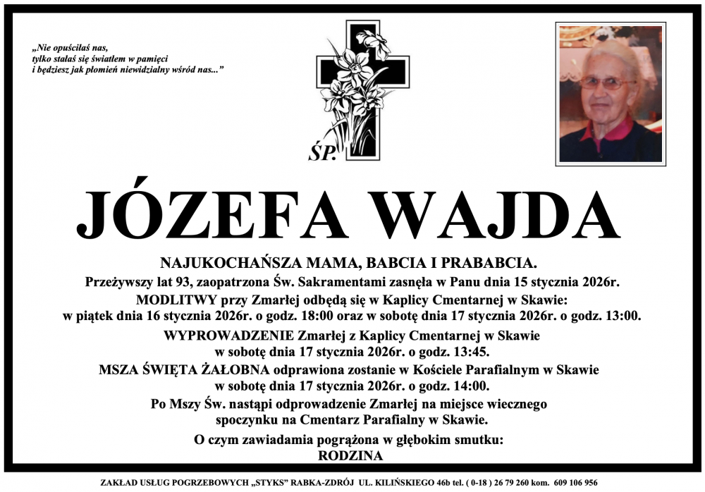 Podhale24.pl zastrzega sobie prawo do nie publikowania wspomnień, w szczególności tych nie związanych z profilem działu nekrologi, zawierających wulgaryzmy, wzywających do zachowań niezgodnych z prawem, obrażających osoby publiczne i prywatne, obrażających inne narodowości, rasy, religie itd, oraz te, bez możliwości telefonicznej lub mailowej weryfikacji ich autora.