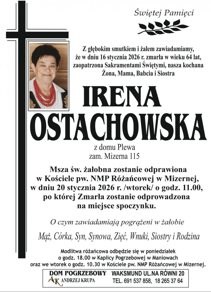 Irena Ostachowska - Nekrologi - podhale24.pl