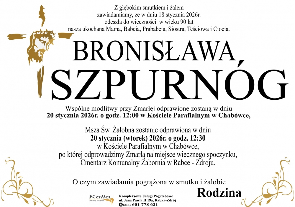 Bronisława Szpurnóg - Nekrologi - podhale24.pl