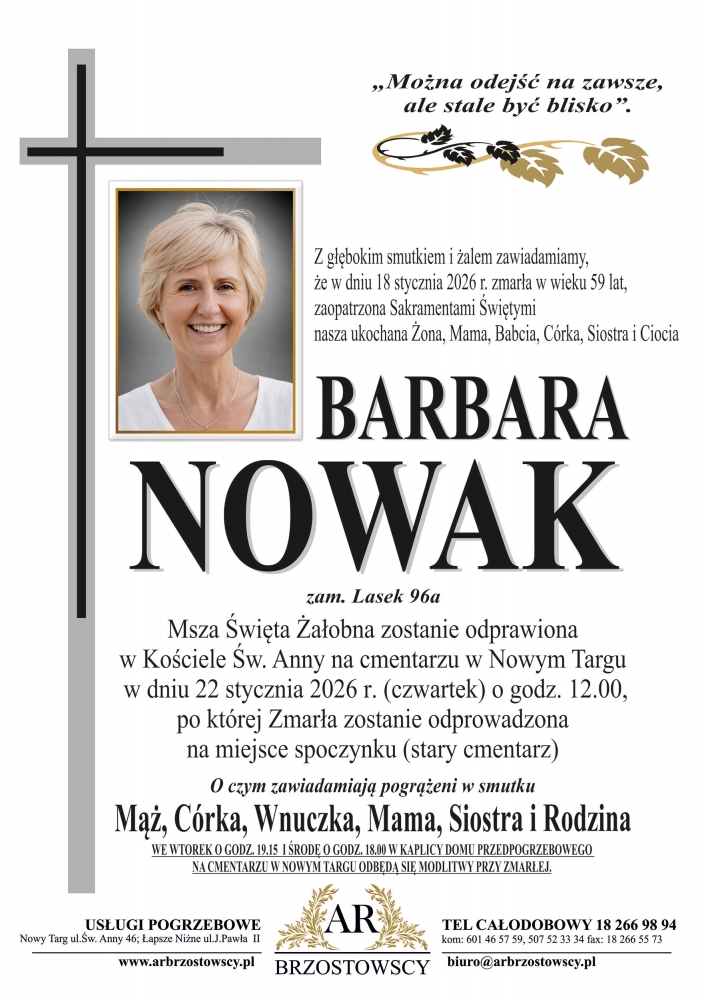 Barbara Nowak - Nekrologi - podhale24.pl