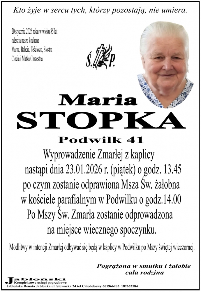 Podhale24.pl zastrzega sobie prawo do nie publikowania wspomnień, w szczególności tych nie związanych z profilem działu nekrologi, zawierających wulgaryzmy, wzywających do zachowań niezgodnych z prawem, obrażających osoby publiczne i prywatne, obrażających inne narodowości, rasy, religie itd, oraz te, bez możliwości telefonicznej lub mailowej weryfikacji ich autora.