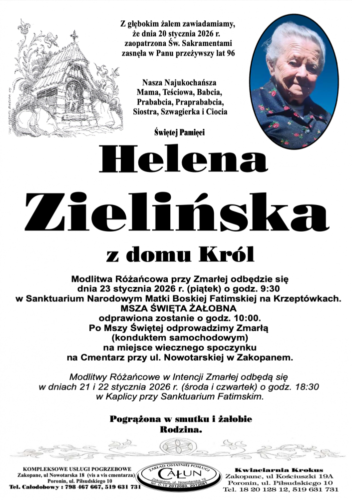 Podhale24.pl zastrzega sobie prawo do nie publikowania wspomnień, w szczególności tych nie związanych z profilem działu nekrologi, zawierających wulgaryzmy, wzywających do zachowań niezgodnych z prawem, obrażających osoby publiczne i prywatne, obrażających inne narodowości, rasy, religie itd, oraz te, bez możliwości telefonicznej lub mailowej weryfikacji ich autora.