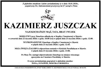 Podhale24.pl zastrzega sobie prawo do nie publikowania wspomnień, w szczególności tych nie związanych z profilem działu nekrologi, zawierających wulgaryzmy, wzywających do zachowań niezgodnych z prawem, obrażających osoby publiczne i prywatne, obrażających inne narodowości, rasy, religie itd, oraz te, bez możliwości telefonicznej lub mailowej weryfikacji ich autora.