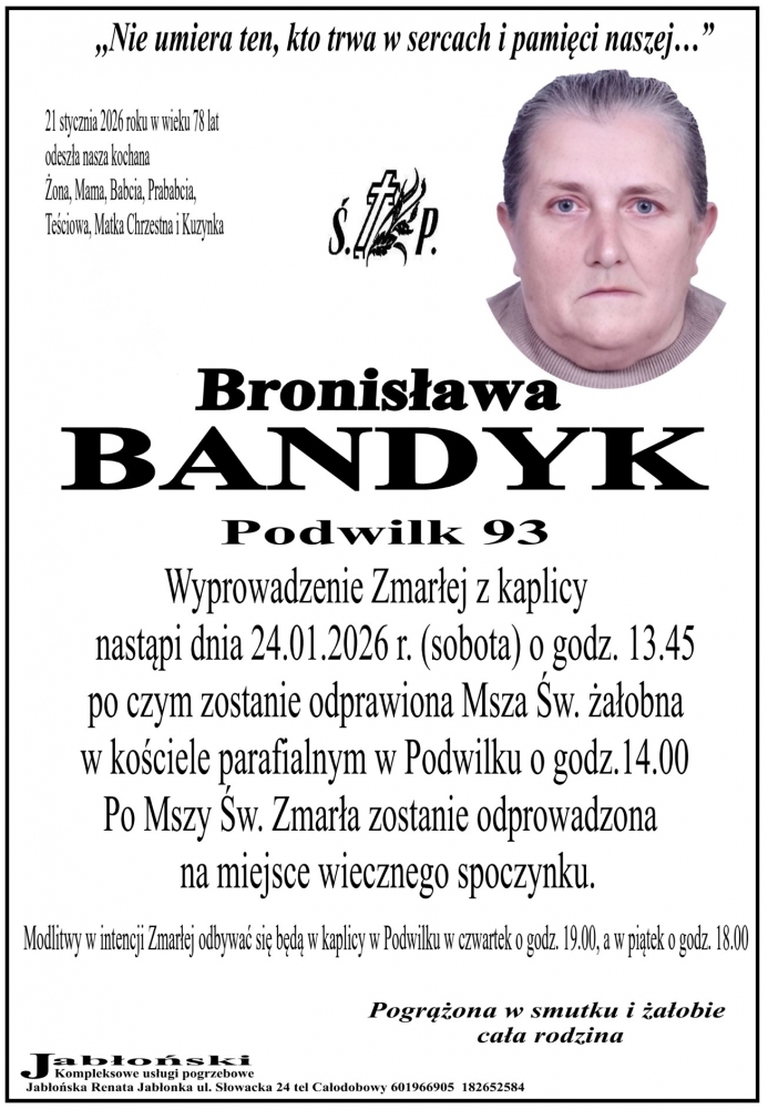 Bronisława Bandyk - Nekrologi - podhale24.pl