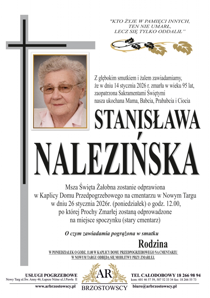 Stanisława Nalezińska - Nekrologi - podhale24.pl