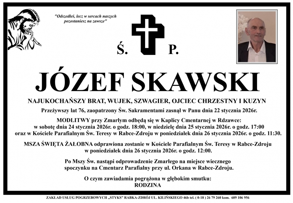 Podhale24.pl zastrzega sobie prawo do nie publikowania wspomnień, w szczególności tych nie związanych z profilem działu nekrologi, zawierających wulgaryzmy, wzywających do zachowań niezgodnych z prawem, obrażających osoby publiczne i prywatne, obrażających inne narodowości, rasy, religie itd, oraz te, bez możliwości telefonicznej lub mailowej weryfikacji ich autora.
